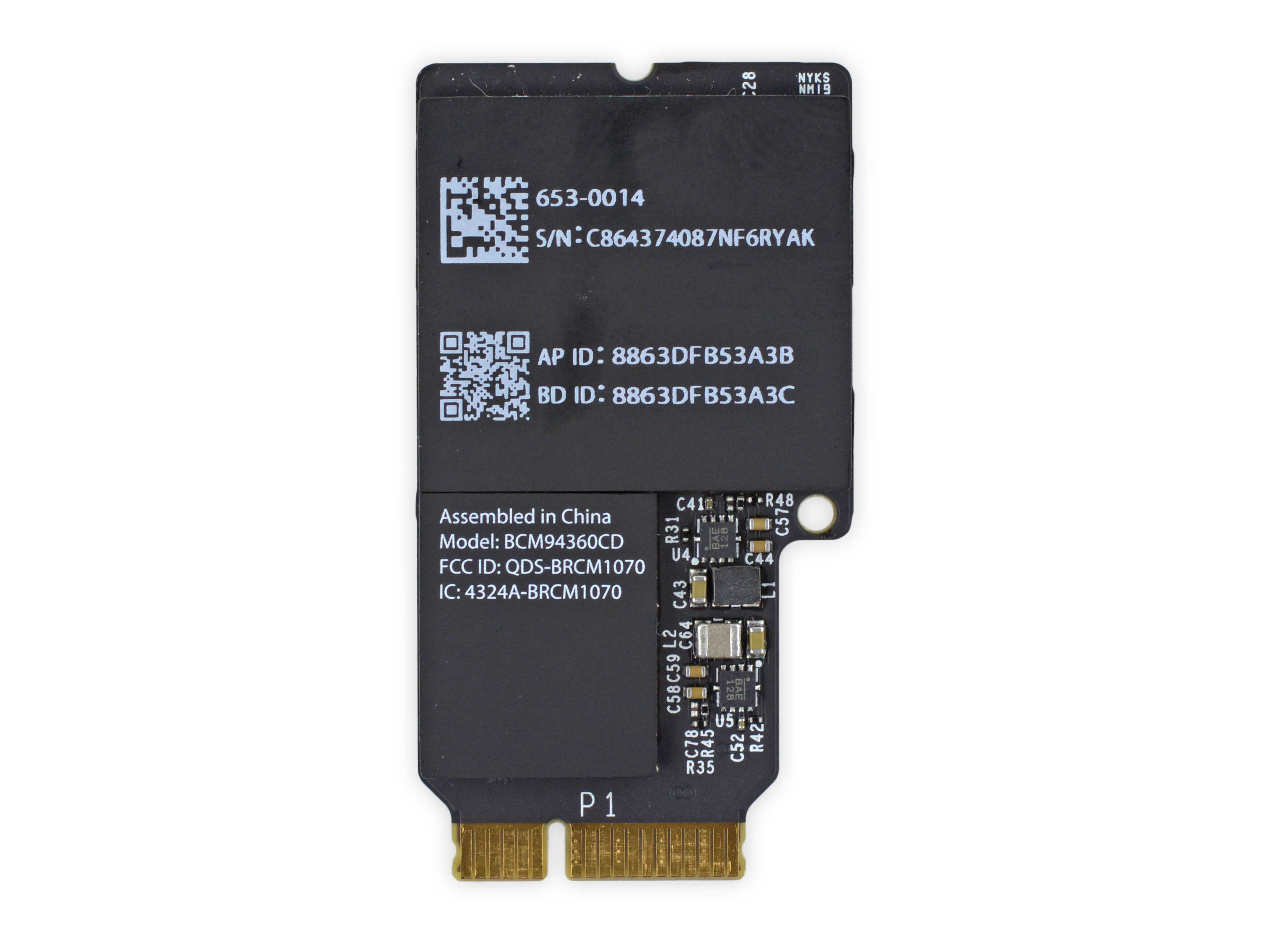 The AirPort/Bluetooth card, identified by its model number BCM94360CD, consisting of: